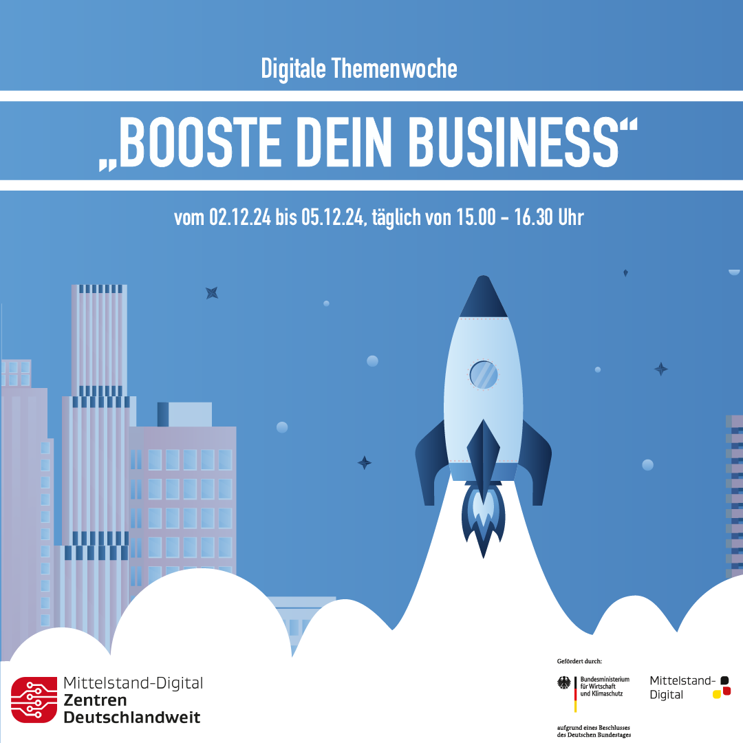 wir laden Sie herzlich zu unserer digitalen Themenwoche „BOOSTE DEIN BUSINESS“ ein, die Ihnen wertvolle Einblicke und Werkzeuge an die Hand gibt, um Ihr Unternehmen im digitalen Zeitalter voranzubringen. Diese spannende Woche wird von den mitteldeutschen Digitalzentren ausgerichtet und findet online statt.