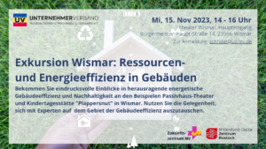 Bekommen Sie eindrucksvolle Einblicke in herausragende energetische Gebäudeeffizienz und Nachhaltigkeit an den Beispielen Passivhaus-Theater und Kindertagesstätte „Plappersnut“ in Wismar. Nutzen Sie die Gelegenheit, sich mit Experten auf dem Gebiet der Gebäudeeffizienz auszutauschen.