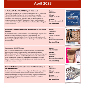 06.09.2023 / 12:00 bis 17:30 Uhr – Rostock / Jetzt anmelden! Am 6. September 2023 macht die Transferkampagne „Digitale Medien im Ausbildungsalltag“ Station in Rostock. In den Räumen des Aus- und Fortbildungszentrums (AFZ) Rostock lernen die Teilnehmenden die App „RehaGoal“, die Lernanwendung „KeaP digital“ und das VR-Projekt „HandLeVR“ kennen. Programm 12:00 Uhr Registrierung & Imbiss … Weiterlesen …