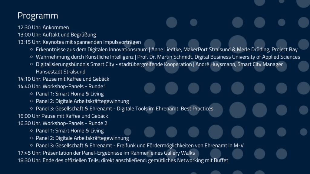 Wir möchten herzlich zur 3. Regionalkonferenz „Technologisierung zur Optimierung von Unternehmens- und Alltagsprozessen“ am 23. November 2023 ab 12:30 Uhr (Check-In) ins Stralsunder Rathaus einladen. Diese Konferenz verspricht nicht nur eine informative Erfahrung, sondern auch eine inspirierende Reise durch die Welt der digitalen Innovationen für unsere Region.